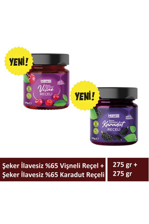 Şeker İlavesiz Vişne Reçeli ve Karadut Reçeli Ekstra Geleneksel 2 Adet x 275 gr