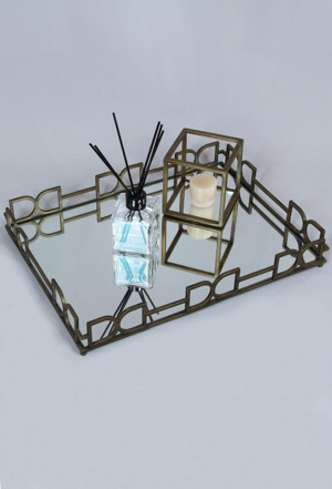 Düz Kesim Kare Dekoratif Aynalı, Söz, Nişan, Sunum, Damat, Kahve Tepsisi Tray-02