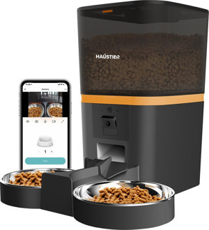 Haustier QQ005-Dual Akıllı Kedi Otomatik Mama Kabı, App Kontrol, Sesle Çağırma, Çift Kap, 6Lt Hazne,480P Kamera