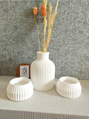Beyaz Renk Özel Tasarım Kokulu Mum Ve Üçgen Vazo Aksesuar Seti