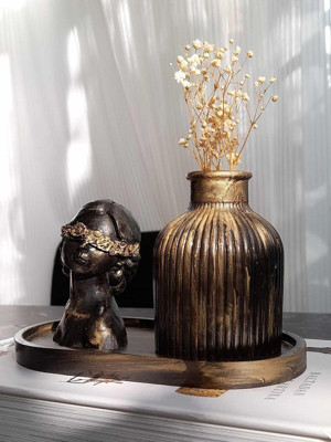 Dekoratif 3’Lü Set Oval Tabak Silindir Vazo Lotus Takı Tabağı