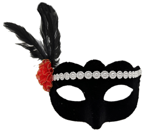 Siyah Renk Süet Kaplama Gümüş Dantelli Kırmızı Gül Tasarımlı Parti Maskesi 18x20 cm