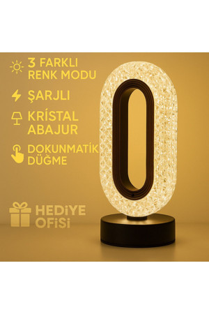 | Kristal Masa Lambası – Şarjlı, Dokunmatik, 3 Renk Modlu Dekoratif Işık