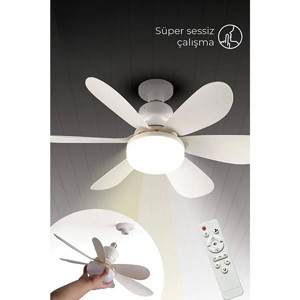 HELIOS Tavan Vantilatörü 36w Beyaz / Günışığı Ledli E-27 Duy a Takılabilen 5 Kanatlı Kumandalı Vanti