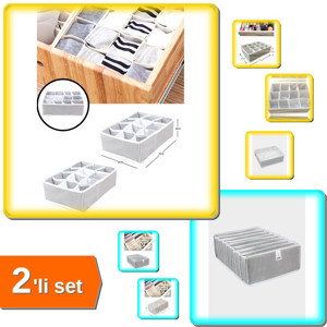 Pratik 12 Bölmeli Çekmece Düzenleyici + Akordiyon 8 Gözlü Organizer 2li Set E7F8G9