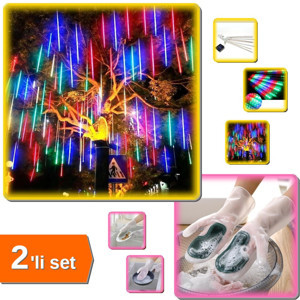 8 Parça Solar Meteor Tüp Bahçe Dış Mekan Aydınlatma + Silikon Bulaşık Yıkama Eldiveni - 2li Set H7A6