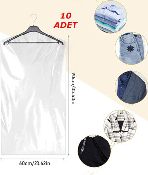 10 Adet 60*90 Cm Şeffaf Elbise Poşeti, Askı Delikli Omuz Kesimli Koruyucu Elbise Kıyafet Hurcu