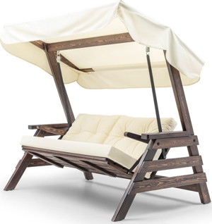 Riva Swing Ahşap Dış Mekan Bahçe Balkon Ve Teras Salıncağı Krem