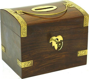 Kumbara Kilitli Ahşap Kutu Kumbara Hediyelik