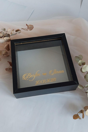 25X25 Cm Derin Siyah Anı Çerçevesi Düz Zeminli Isimli Ve Tarihli! Derin Çerçeve