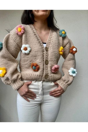 Papatyalı Çiçekli Örgü Hırka