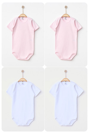 Kısa Kollu Çıtçıtlı Düz Body Zıbın Badi %100 Pamuk Dörtlü Set 4'Lü Hediyelik