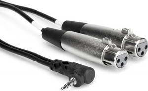 3.5 mm. 90 derece TRS (M) Dual XLR (F) Stereo Breakout kablo, 1.5 mt.