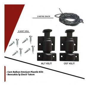 KALİTE - CAM BALKON EMNİYET PLASTİK KİLİT - BONCUKLU İP ZİNCİR TAKIM SETİ