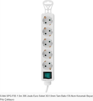 S-LİNK Spg-f05 1.5m 306 Joule Euro Soket 3g1.0mm Tam Bakır 5li Akım Korumalı Beyaz Priz Çoklayıcı - Image 1