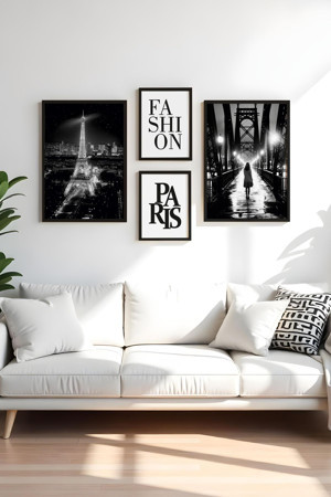 Huhuli Ahşap Siyah Çerçeveli 4 Parça Set Tablo Huhu455 - Image 1