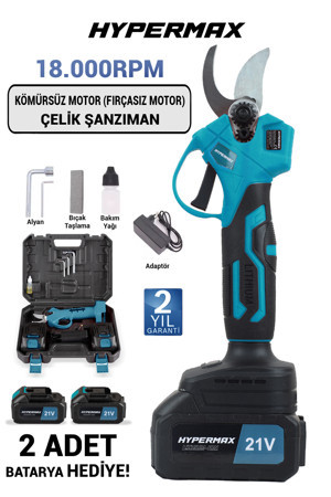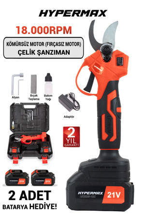 Çift Akülü Çelik Şanzuman Göstergeli Şarjlı Dal Ağaç Kesme Bağ Budama Makası