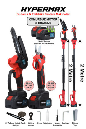 3’Lü Set Çift Akülü 10 Pilli Kömürsüz Teleskopik Kollu Bağ Budama Makası Ve Budama Testeresi