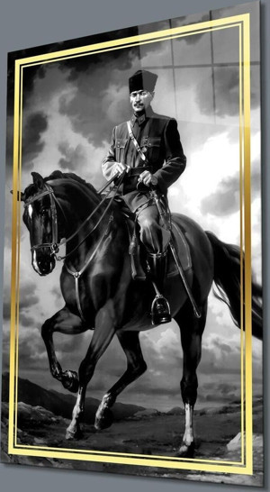 Atatürk At Üstünde Cam Tablo Hediyelik Büyük Tablo Ev Ofis Dekoru
