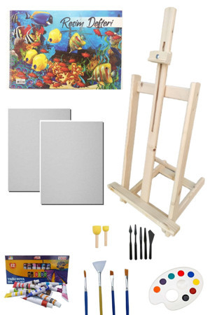 Yağlı Boya Resim Başlangıç Seti-Şövale,35*50Cm Resim Defteri Ve 2 Tuval, (Şövalye)