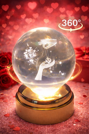 Büyük Boy 360° Dönen Işıklı Kristal Küre – Sevgililer Günü & Anneler Günü Hediyelik