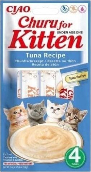 Inaba Ciao Churu Kitten Tuna Balıklı Yavru Kediler için Sıvı Kedi Ödül Maması 14 Gr 4 Adet