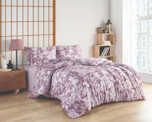 Tek Kişilik Mor Beyaz Çiçek Desenli Nevresim Takımı Eva2213-V1