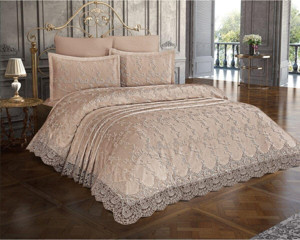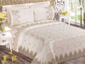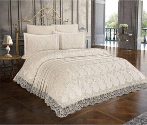 Etz Home Natural Prenses 6Parça Şönil Dantelli Boncuk Işlemeli Abiye Pike Takımı
