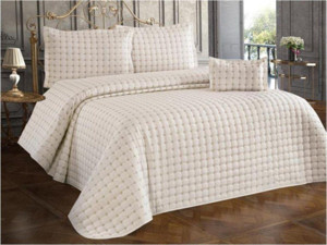 Nakışlı Yatak Örtüsü Tek Kişilik Yıldız Krem Bej