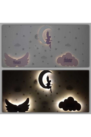 Çocuk Odası Dekoratif Ahşap Melek Takım Gece Lambası Ledli Aydınlatma