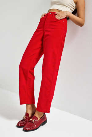 Its Basic Kadın Kırmızı 26w5-19 Relax Fit Velvet Kadife Kumaş Pantolon