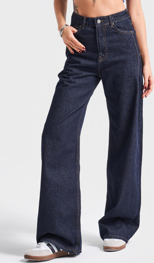 Its Basic Kadın Lacivert Su Yıkama 7W4-50 Wide Leg Fit %100 Koton Denim Jean