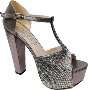6261 Platform Topuklu Deri Taşlı Kadın Abiye Sandalet