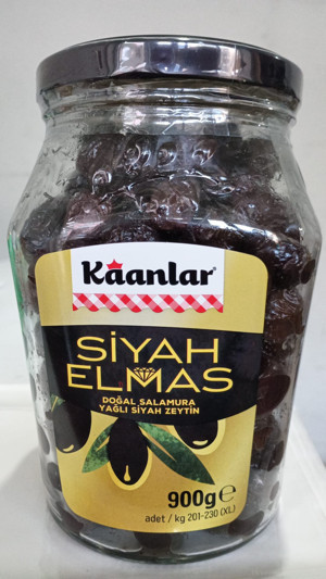 SİYAH ELMAS Doğal Salamura Yağlı Siyah Zeytin 900 Gr CAM XL (201-230)