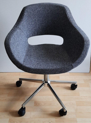 Kamusal Market Büro Koltuğu Çalışma Sandalyesi Döküm Süngerli Gri Keten Kumaş Krom Yıldız Ayaklı - Image 1