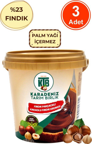 Fındık Parçacıklı Kakaolu Fındık Kreması (%23 Fındık) 800 G x 3 Adet Sürülebilir Çikolata Palm Yağı İçermez
