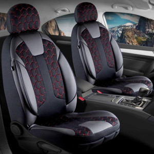 Peugeot 206 Lüx Deri Detaylı Oto Koltuk Kılıfı Ön Arka Takım Cyrus SİYAH KIRMIZI