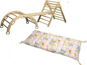 Pikler Tırmanma Seti Ve Yastık | Montessori 3'Lü Set | Kemer Üçgen Merdiven Rampa Harita Yastık