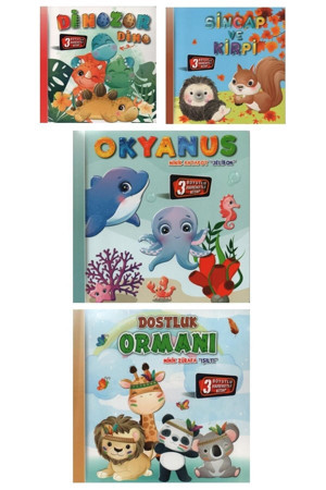 3 Boyutlu, Hareketli Kitaplar "3'lü Set" Pop-up Kitap D.ormanı-okyanus-e.hayvanlar
