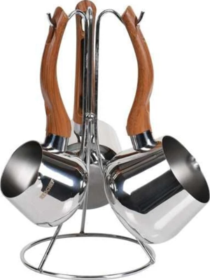 Redcheff 3 Lü Çelik Cezve Ahşap Kulp