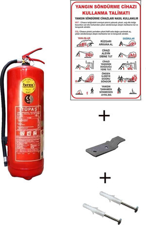 6KG TÜPAŞ YANGIN TÜPÜ, ASKI APARATI,YANGIN TÜPÜ KULLANIM TALİMATI VE DÜBEL VİDA 4LÜ SET
