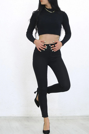 Ganikus Kadın Elanor Siyah Solmaz Yüksek Bel Beş Cepli Likralı Flare İspanyol Paça Jean Pantolon