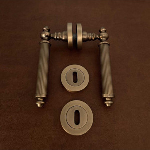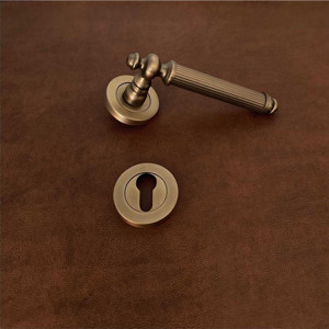 Osmanlı Handles ZK37 Antik Sarı Zamak Yuvarlak Rozetli Çelik Kapı Kolu Sağ Basar Tek Yön