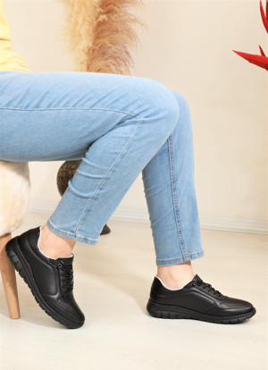 1684 Hakiki Deri Anatomik Tabanlı Bayan Günlük Ayakkabı - NKT01684-siyah-38