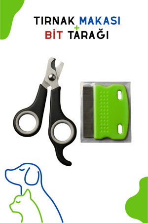 Kedi Köpek Tırnak Makası + Bit Tarağı 2'Li Profesyonel Set