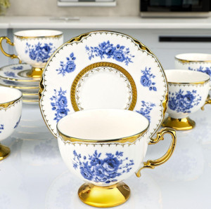 Kosova Blue Rose 90 ml 6’lı Ayaklı Kahve Fincan Takımı
