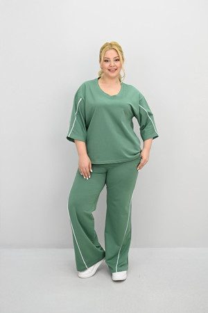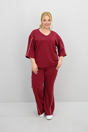Kadın Büyük Beden Kısa Kollu V Yaka Ara Biye Detaylı Eşofman Takımı 8181-25