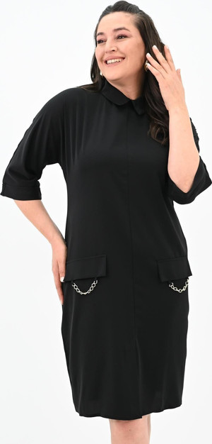 Kadın Büyük Beden Polo Yaka Elbise 5214-24 Siyah XL