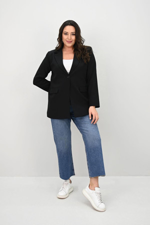 Kadın Büyük Beden Astarlı Düğmeli Blazer Ceket 9008-25-1