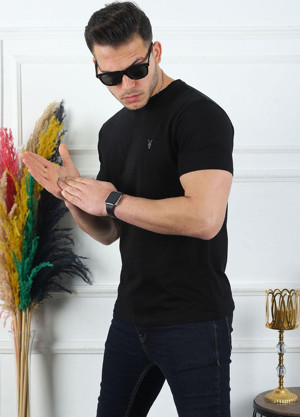Kozik Erkek Siyah Iç Göstermeyen %100 Pamuk Standart Fit Erkek Basic Spor Tişört
